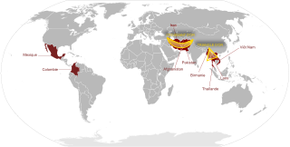 Dans l'imaginaire collectif cette production est attachée au Triangle d'or (Birmanie, Laos, Thaïlande) et au croissant d'or (Afghanistan, Pakistan, Iran).